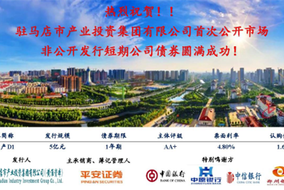 10月27日,市產(chǎn)業(yè)集團(tuán)首次在公開市場非公開發(fā)行短期公司債劵圓滿成功,發(fā)行規(guī)模5億元,期限1年,利率4.8%,主承銷商為平安證券。此次債券發(fā)行成功意味著市產(chǎn)業(yè)集團(tuán)向資本市場邁出了堅(jiān)實(shí)的一步,實(shí)現(xiàn)資本市場融資新的突破,充分說明資本市場對市產(chǎn)業(yè)集團(tuán)品牌效應(yīng)和綜合實(shí)力…